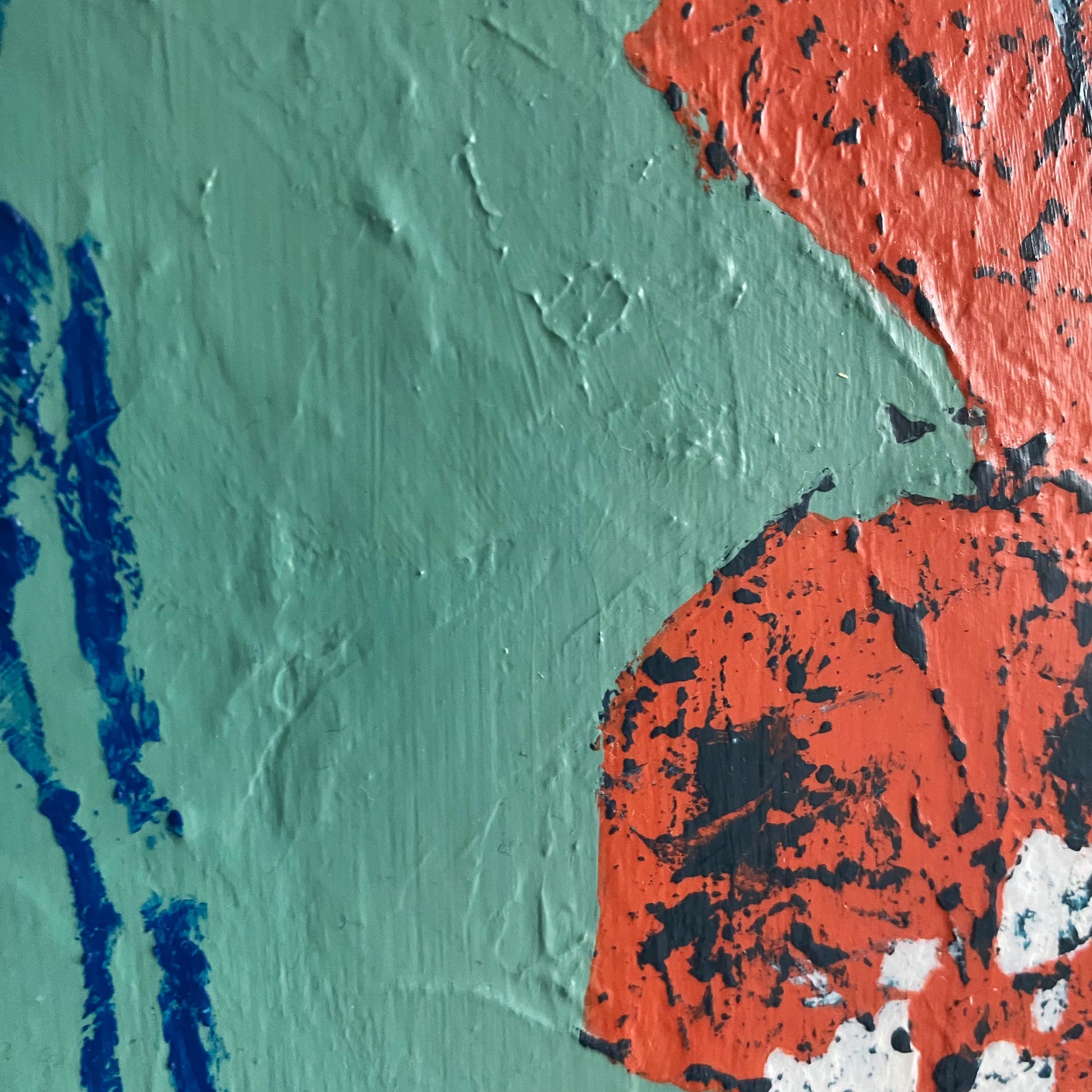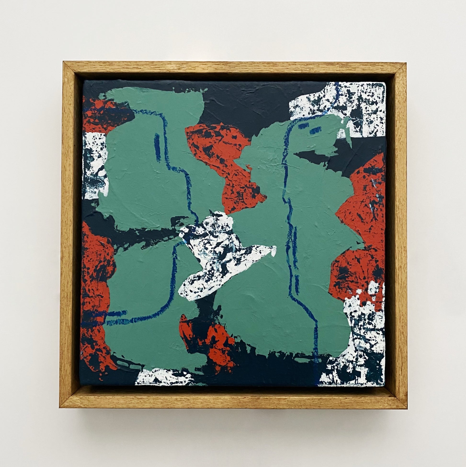 This is a mixed media painting on a 38mm gallery wrapped canvas and finished with a removable UV matte varnish. The edges are painted a dark blue and you have the choice to order it unframed or in a simple float frame made from varnished ayous wood. This piece is titled and signed on the back and will arrive wired and ready to hang.