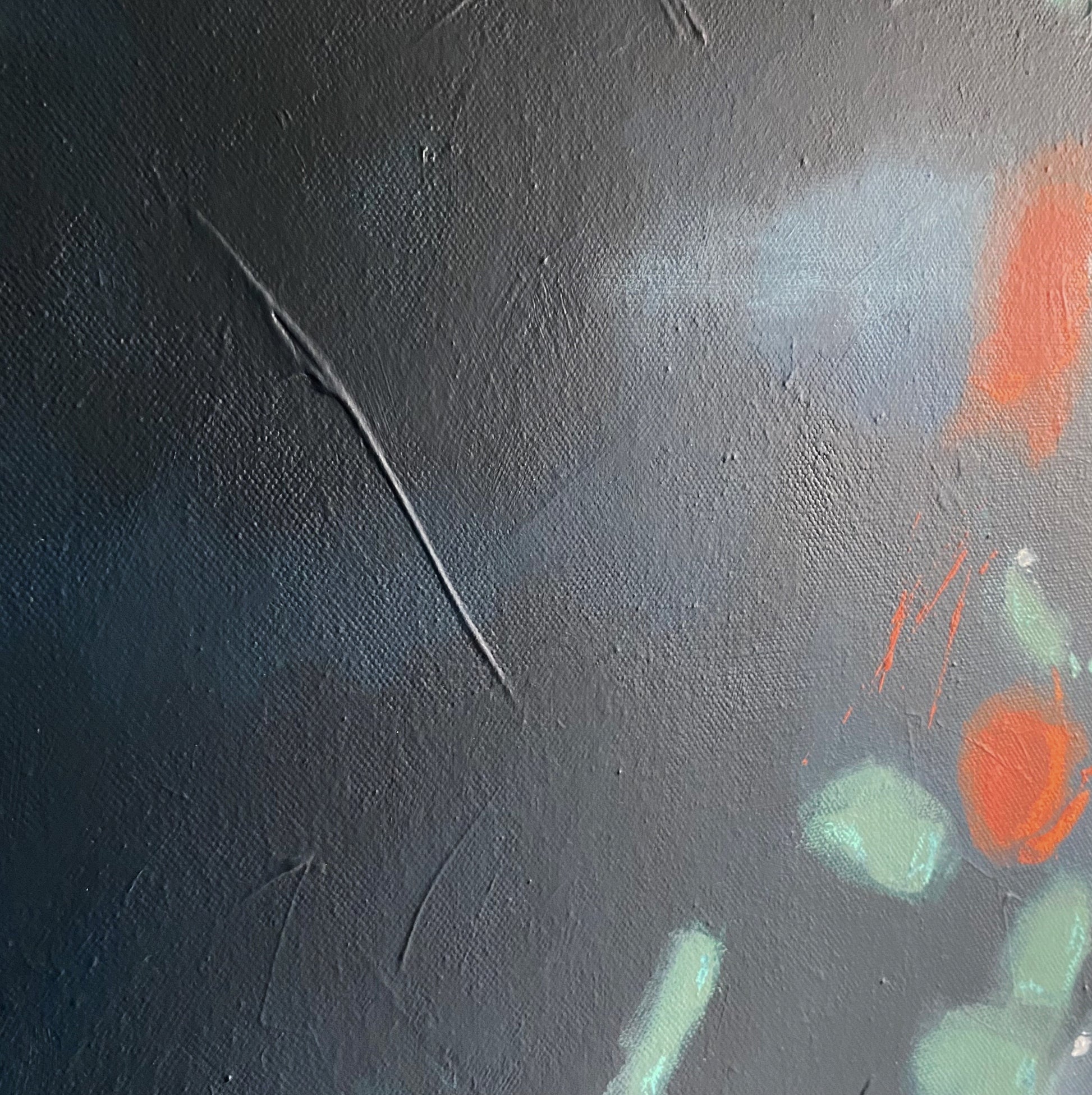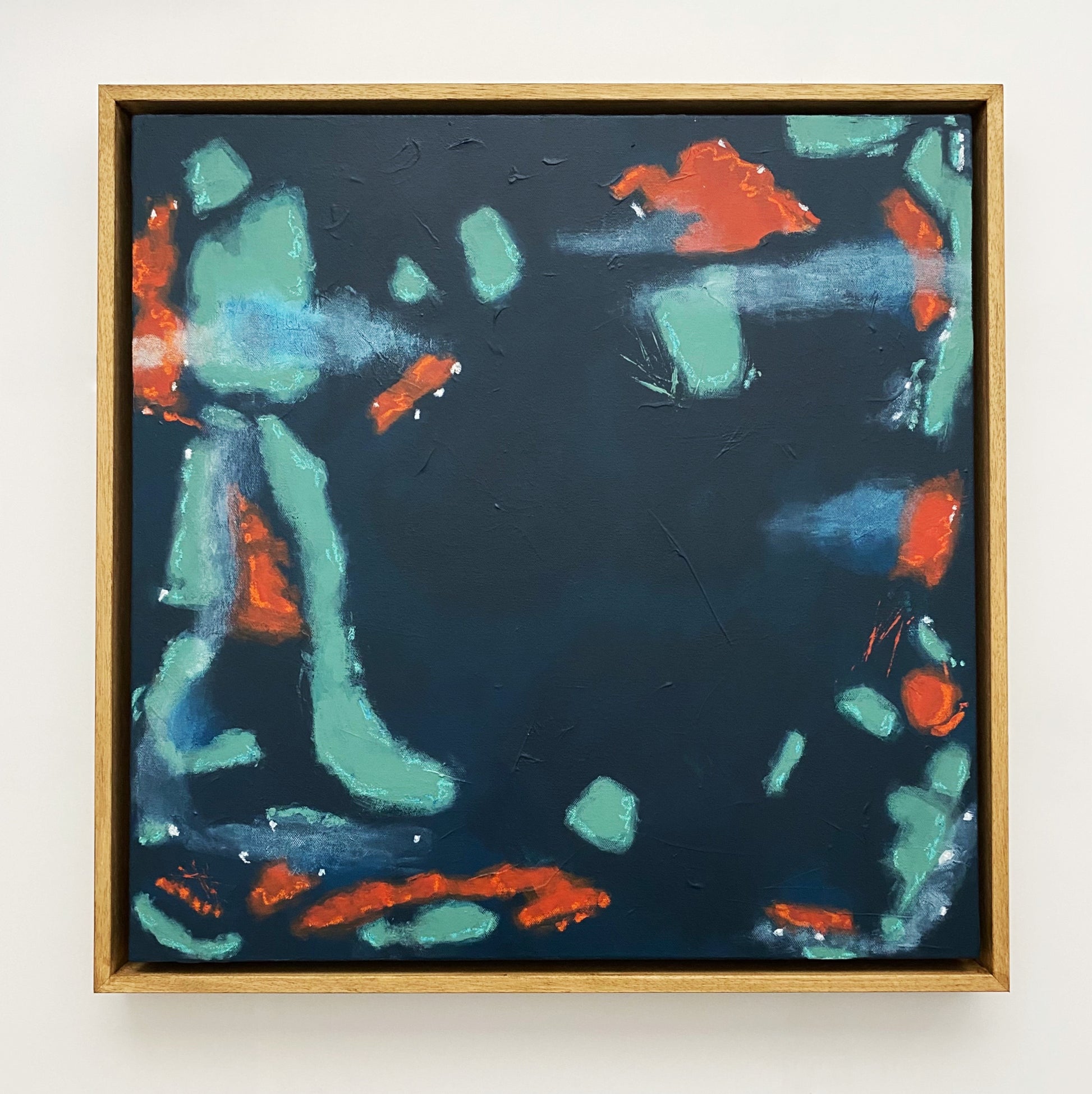 This is a mixed media painting on a 38mm gallery wrapped canvas and finished with a removable UV matte varnish. The edges are painted a dark blue and you have the choice to order it unframed or in a simple float frame made from varnished ayous wood. This piece is titled and signed on the back and will arrive wired and ready to hang.